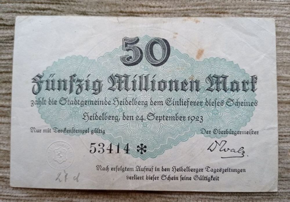 Werty71 Германия 50000000 марок 1923 50 миллионов банкнота Гейдельберг Лев