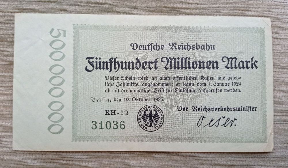 Werty71 Германия 500000000 марок 1923 500 миллионов банкнота Берлин железные дороги