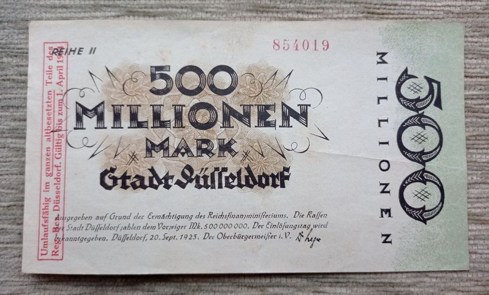 Werty71 Германия 500000000 марок 1923 500 миллионов Гроссгельд Дюссельдорф банкнота