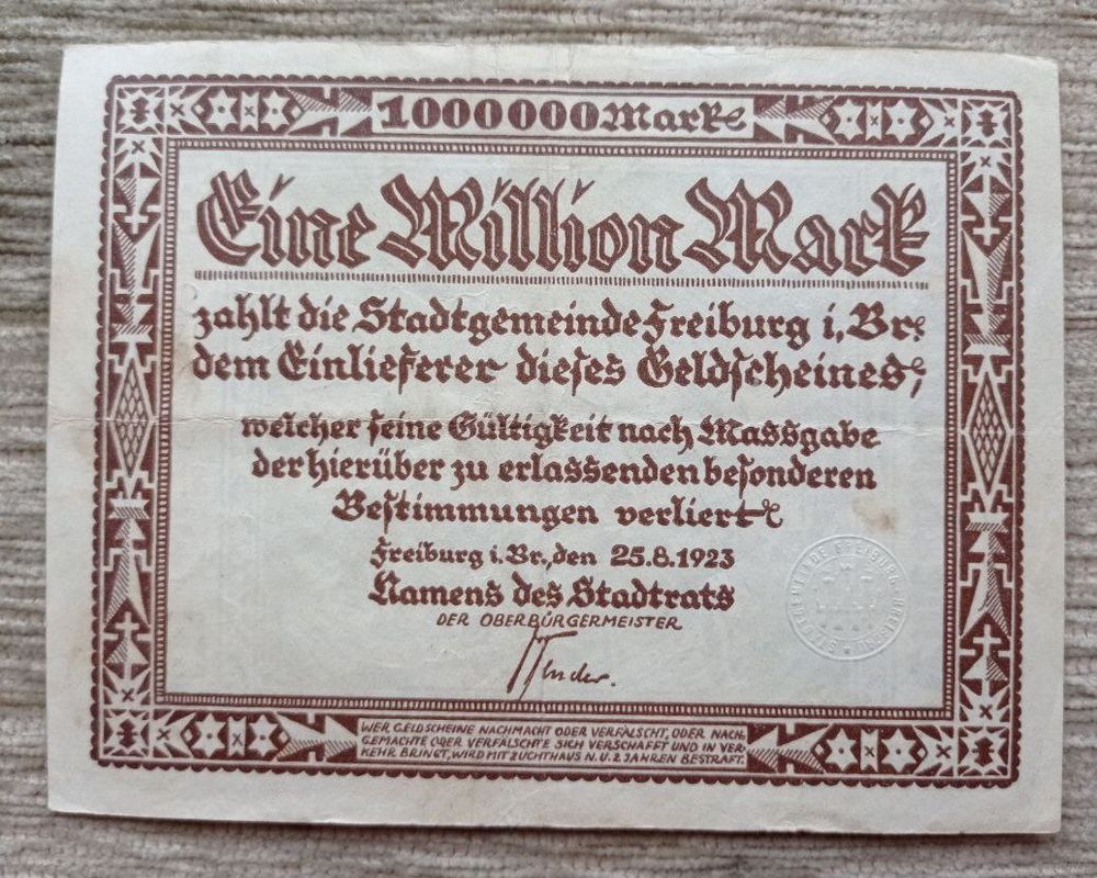 Werty71 Германия Веймар 1000000 марок 1923 банкнота 1 миллион гроссгельд Фрайбург Брайсгау
