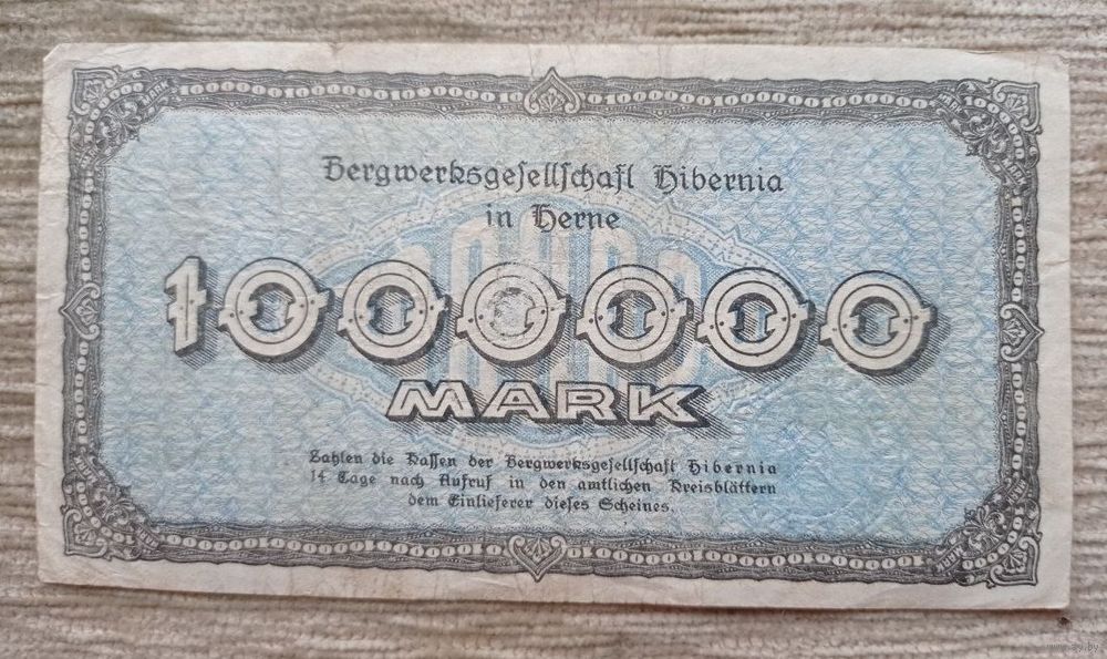 Werty71 Германия Веймар 1000000 марок 1923 банкнота 1 миллион гроссгельд горнодобывающая компания Hiberna в Херне