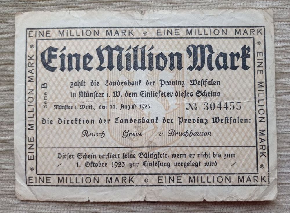 Werty71 Германия Веймар 1000000 марок 1923 банкнота 1 миллион гроссгельд Вестфалия Мюнстер
