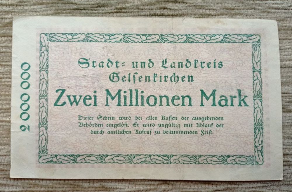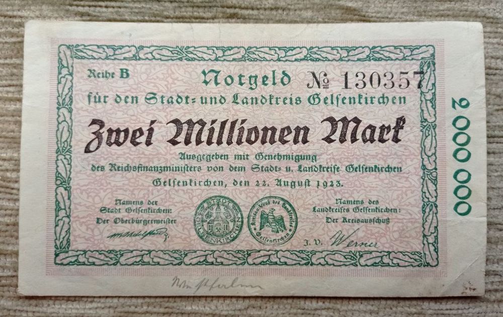 Werty71 Германия Веймар 2000000 марок 1923 банкнота 2 миллиона гроссгельд Город и район Гельзенкирхен