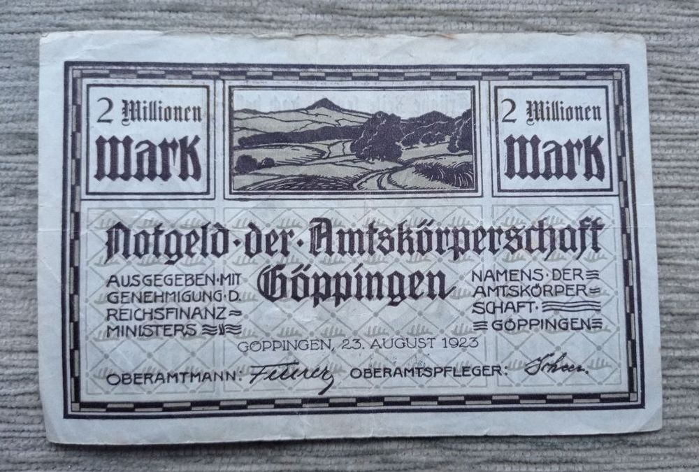 Werty71 Германия Веймар 2000000 марок 1923 банкнота 2 миллиона гроссгельд Вюртемберг Гёппинген