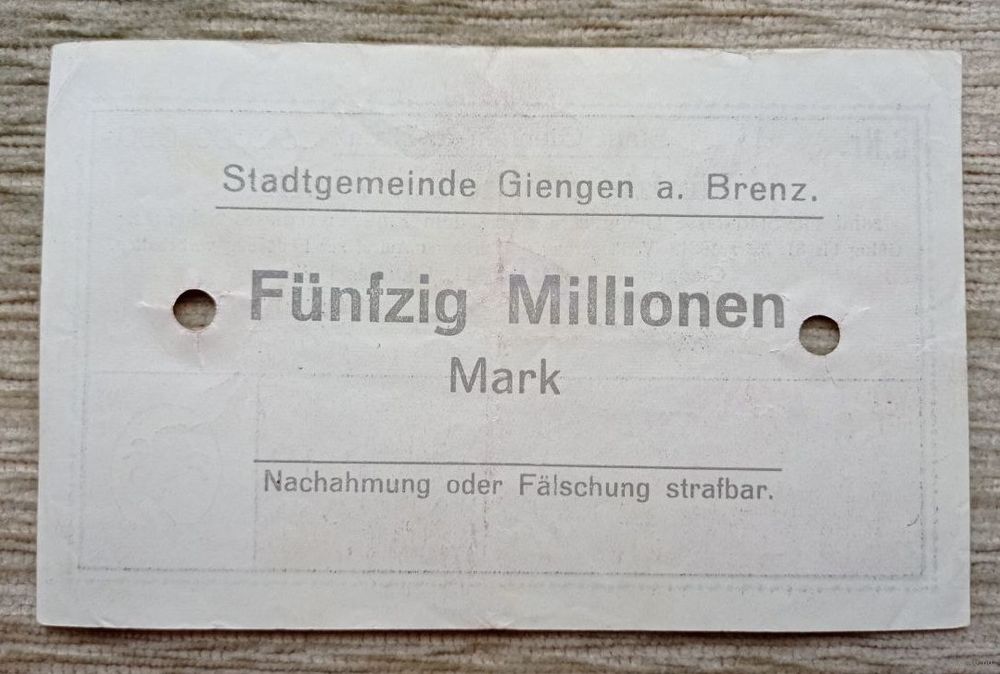 Werty71 Германия Веймар 50000000 марок 1923 банкнота 50 миллионов гроссгельд Бренц Гашение