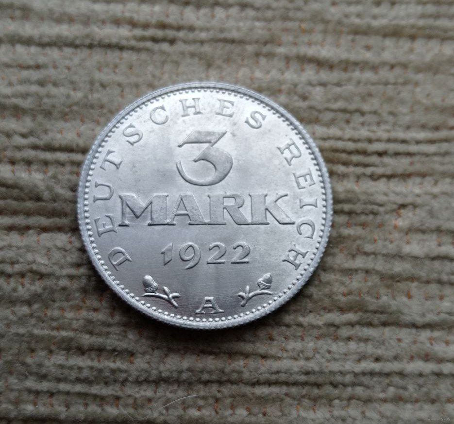 Werty71 Германия Веймар Веймарская Республика 3 марки 1922 A Без надписи редкая Марки Блеск