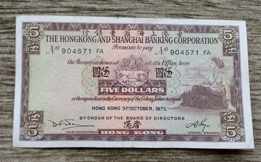 Werty71 Гонконг 5 долларов 1973 банкнота