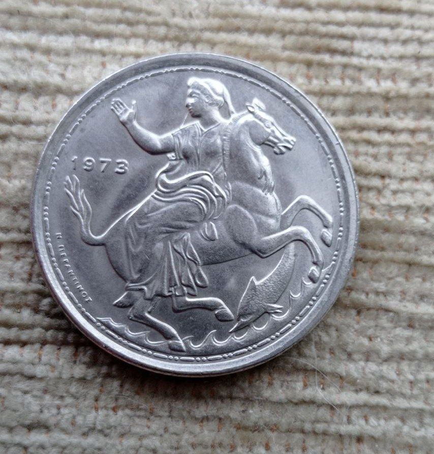 Werty71 Греция 20 драхм 1973 Селена Лошадь Конь Рыба
