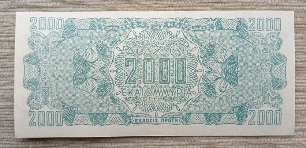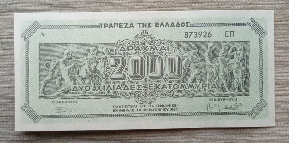 Werty71 ГРЕЦИЯ 2000000000 ДРАХМ 1944 аUNC банкнота 2 миллиарда