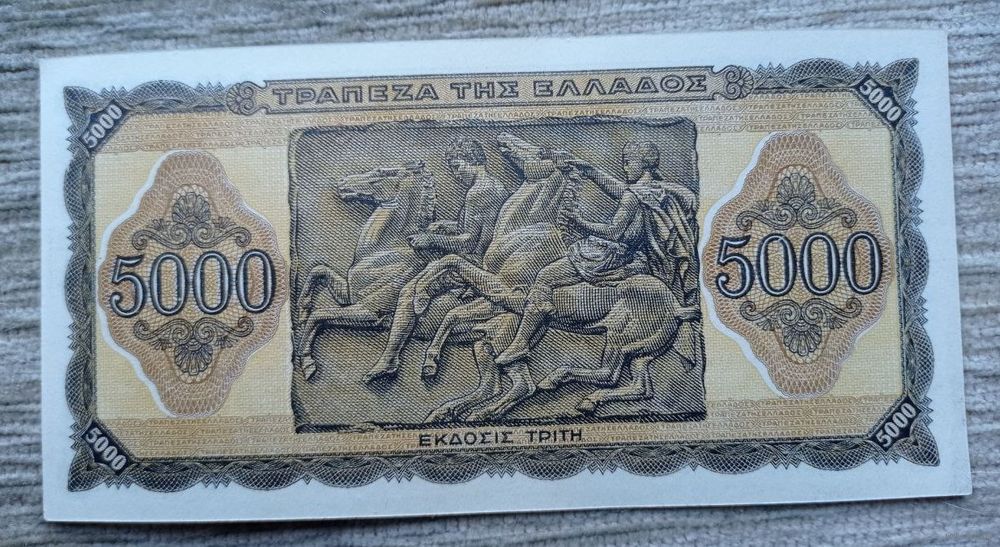 Werty71 ГРЕЦИЯ 5000 ДРАХМ 1943 UNC банкнота