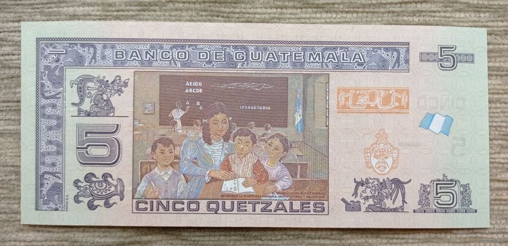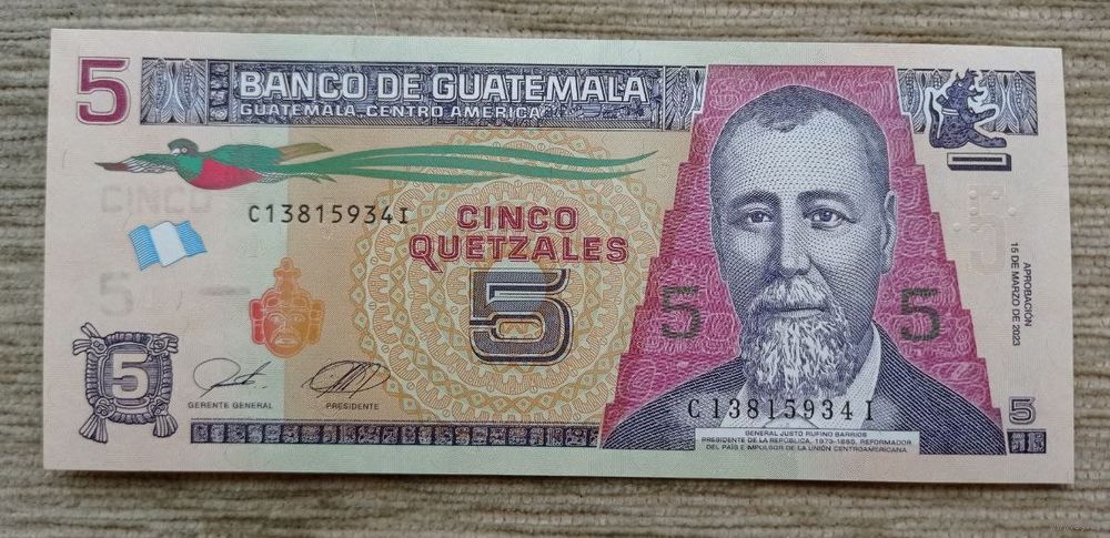 Werty71 Гватемала 5 кетсалей 2023 UNC банкнота Хусто Руфино Барриос Ауйон
