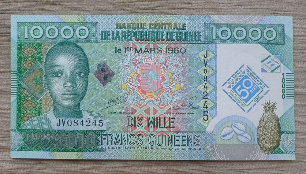 Werty71 Гвинея 10000 франков 2010 UNC банкнота 50 лет центральному банку