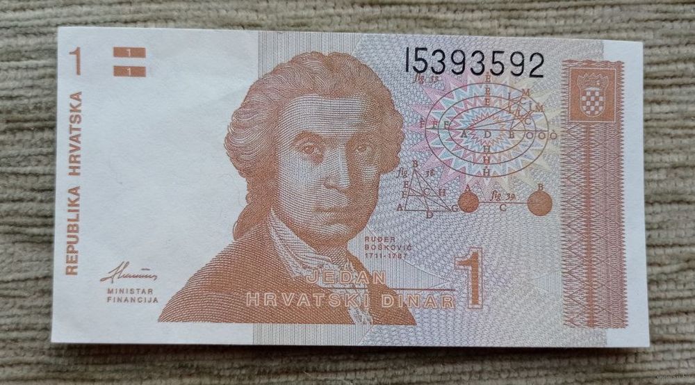 Werty71 Хорватия 1 динар 1991 аUNC банкнота