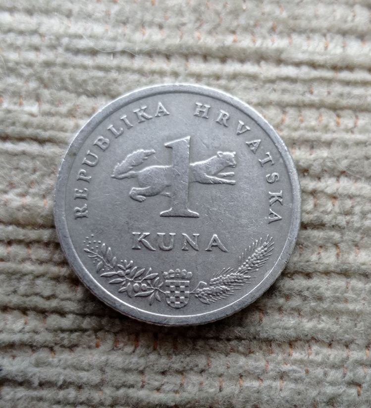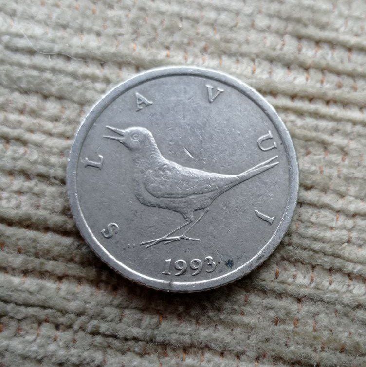 Werty71 Хорватия 1 куна 1993 Соловей птица Дата внизу