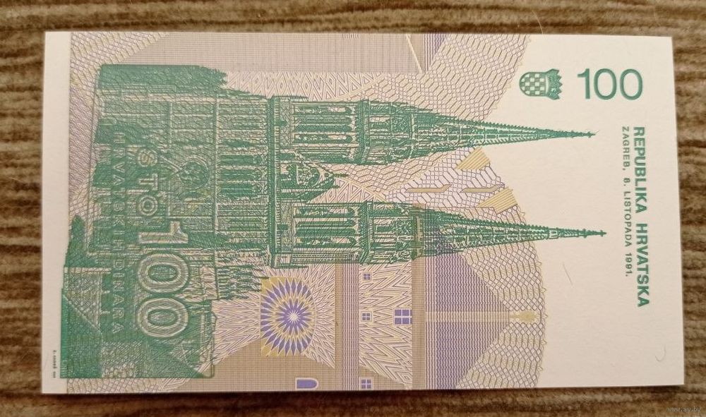 Werty71 Хорватия 100 динар 1991 UNC банкнота