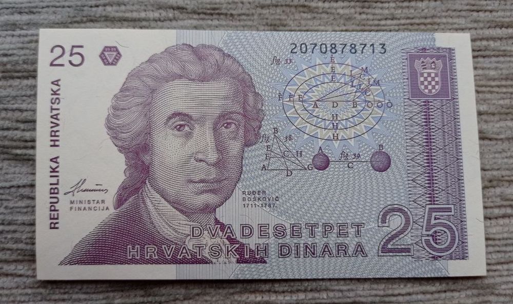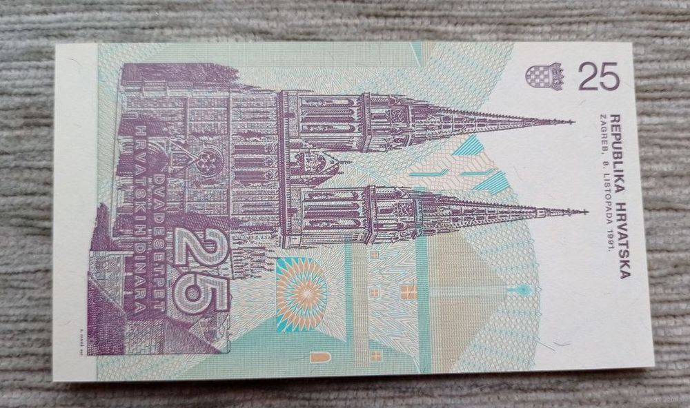 Werty71 Хорватия 25 динаров 1991 UNC банкнота