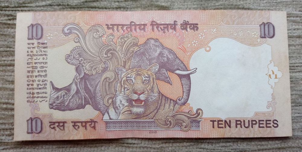 Werty71 Индия 10 рупий 2008 UNC банкнота Львиная капитель колонны Ашоки (музей Сарнатха) Тигр