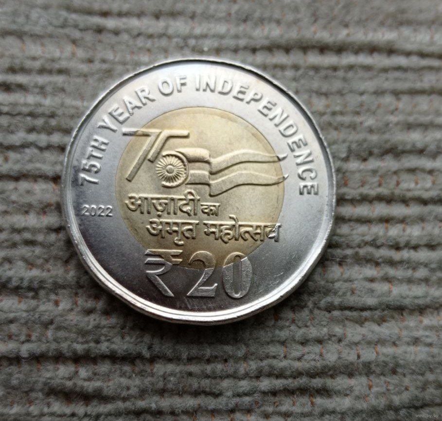 Werty71 Индия 20 рупия 2022 75 лет независимости биметалл