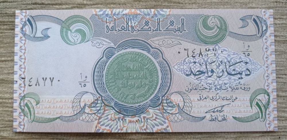 Werty71 Ирак 1 Динар 1992 UNC банкнота выпуск во время войны в Персидском заливе