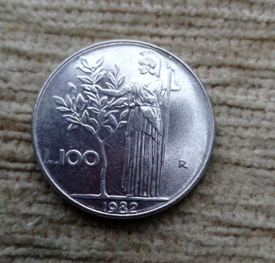 Werty71 Италия 100 лир 1982 Минерва стоит с оливковым деревом