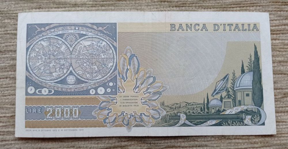 Werty71 Италия 2000 лир 1973 банкнота Галилео Галилей