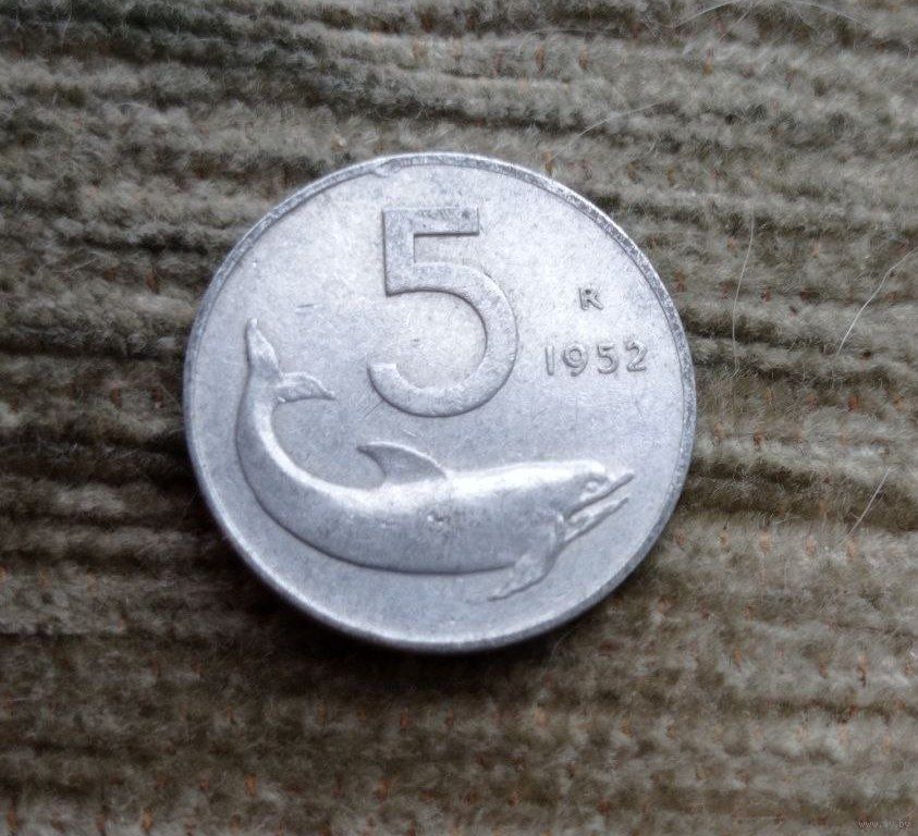 Werty71 Италия 5 лир 1952 Рыба Дельфин