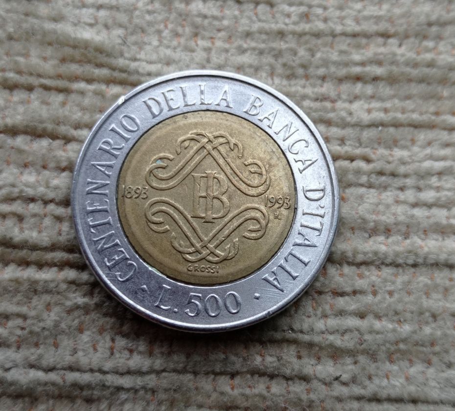 Werty71 Италия 500 лир 1993 биметалл 100 лет Банку Италии