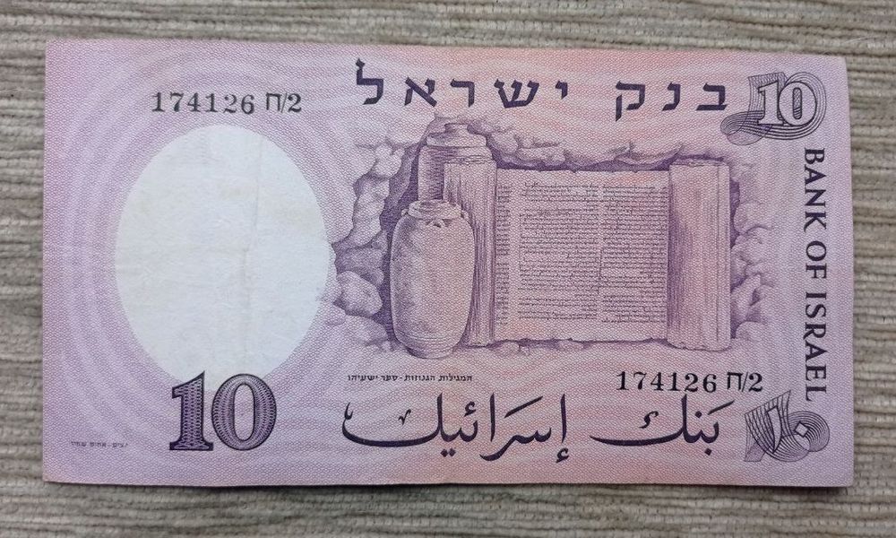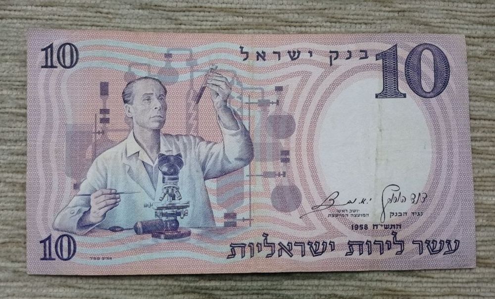 Werty71 Израиль 10 лир 1958 банкнота Чёрный нумератор
