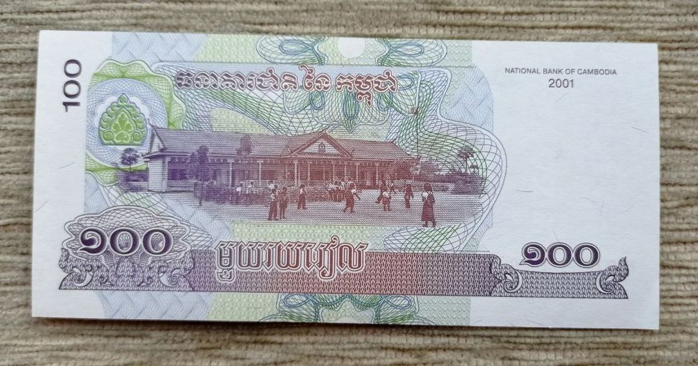 Werty71 Камбоджа 100 риелей риэлей 2001 аUNC банкнота
