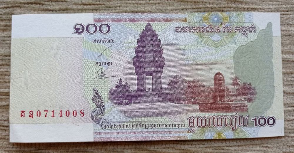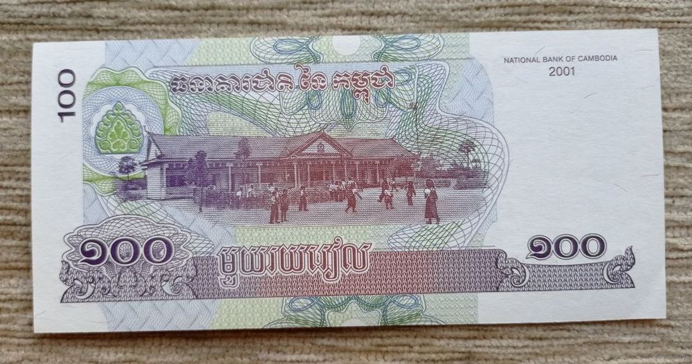 Werty71 Камбоджа 100 риелей риэлей 2001 fUNC банкнота