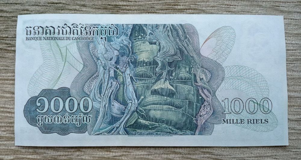 Werty71 Камбоджа Кампучия 1000 риелей 1973 UNC банкнота Красные кхмеры риэлей большой формат