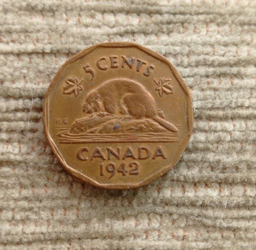 Werty71 Канада 5 центов 1942 Георг 6 Бобр Томпак Жёлтая Редкая