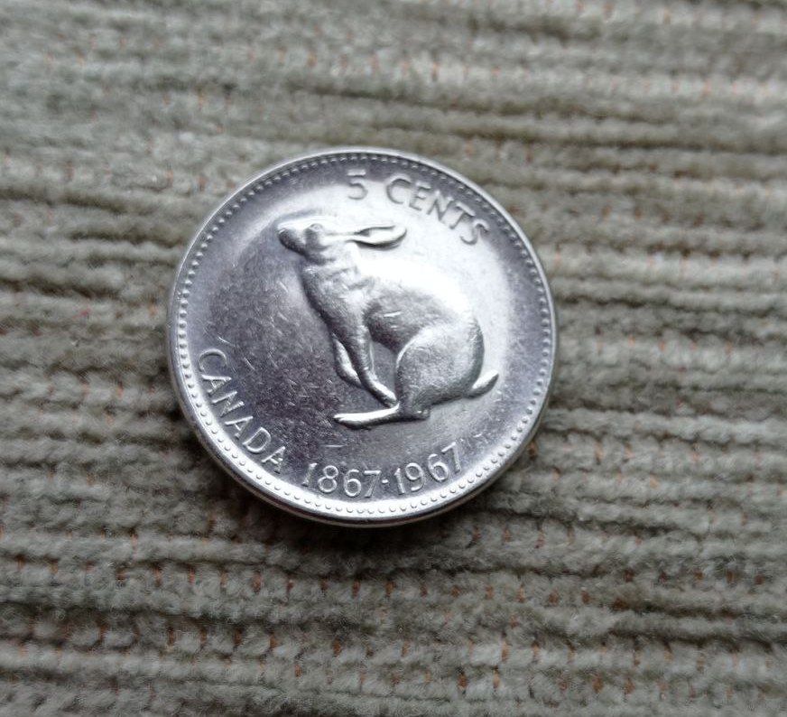 Werty71 Канада 5 центов 1967 100 лет Конфедерации Канада Королева Елизавета 2 Заяц