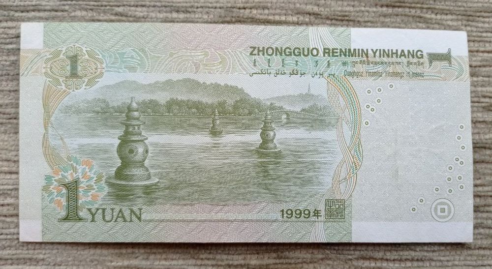 Werty71 КИТАЙ 1 юань 1999 аUNC банкнота Три пруда отражающие луну Западное озеро Хуанчжоу