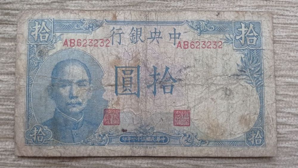 Werty71 Китай 10 юаней 1942 банкнота