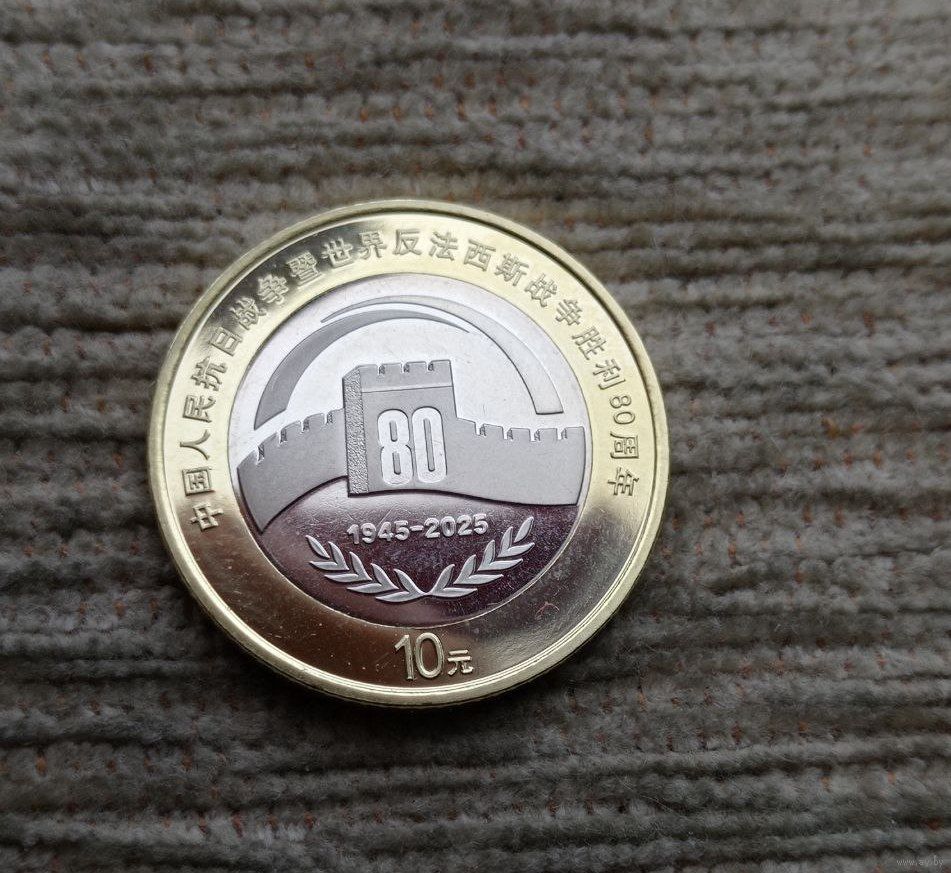 Werty71 Китай 10 юаней 2025 80 лет Победы китайского народа в Войне сопротивления японским захватчикам биметалл