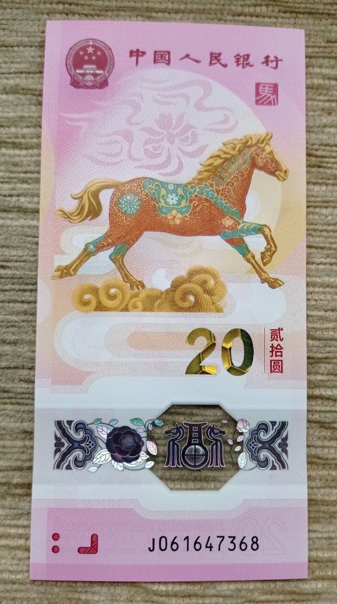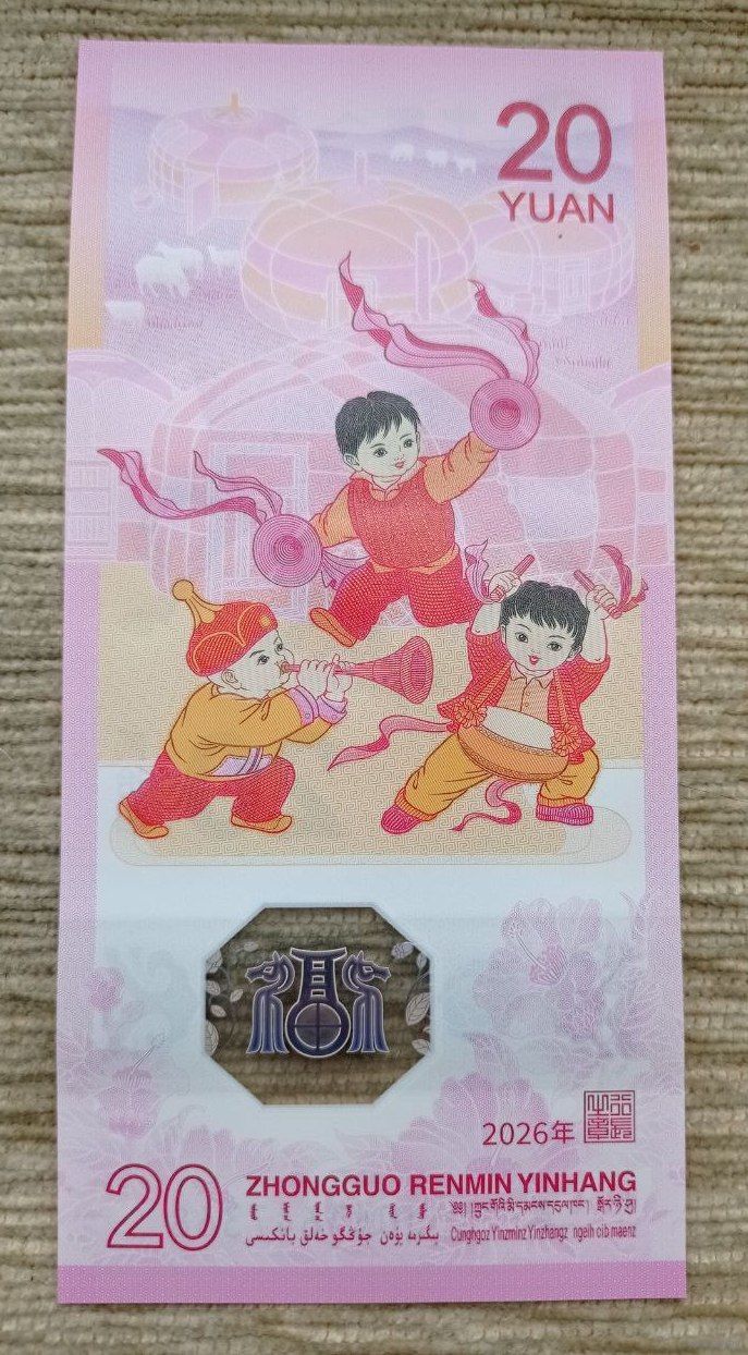 Werty71 Китай 20 юаней 2026 UNC банкнота Китайский год Лошади Полимер