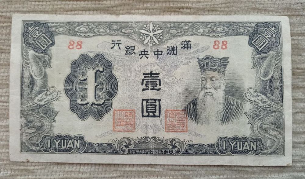 Werty71 Китай Маньчжоу-го Маньчжурия 1 юань 1944 Япония оккупация банкнота не 1937 1 1