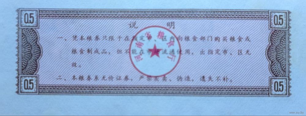 Werty71 Китай Продуктовый купон 0,5 Единиц 1981 провинция Хэби UNC банкнота