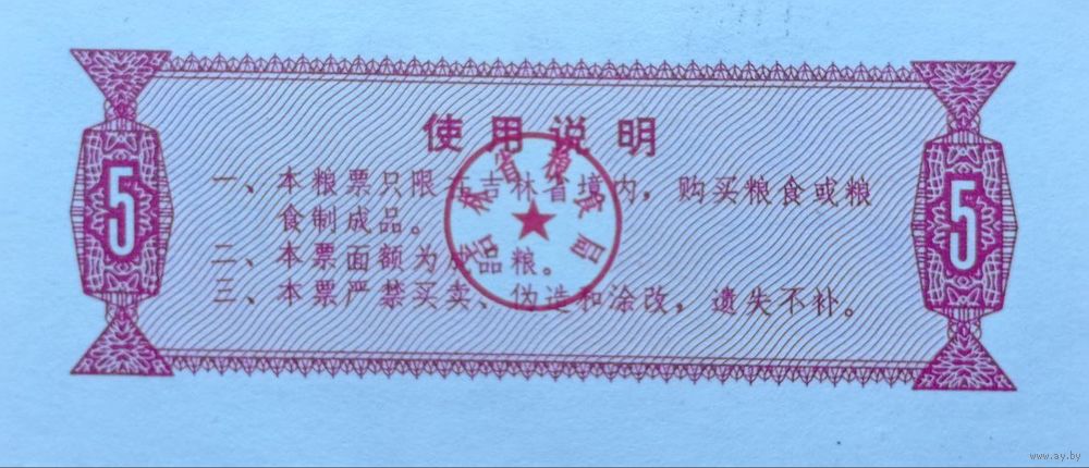 Werty71 Китай Продуктовый купон 5 Единиц 1975 провинция Гуандун UNC банкнота