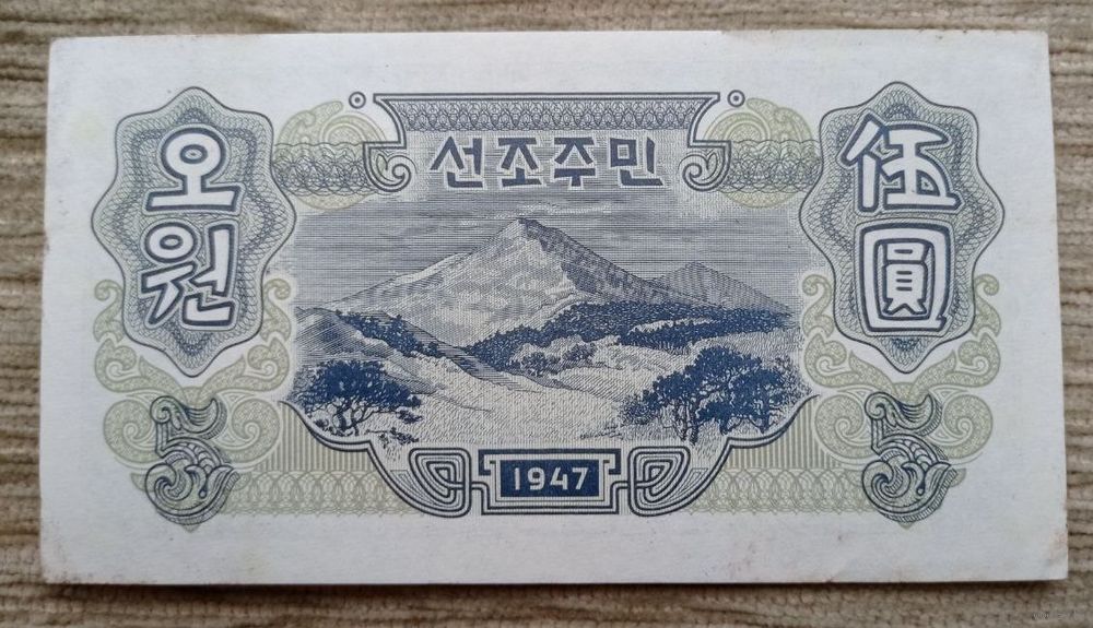 Werty71 КНДР Северная Корея 5 вон 1947 без вз аUNC банкнота