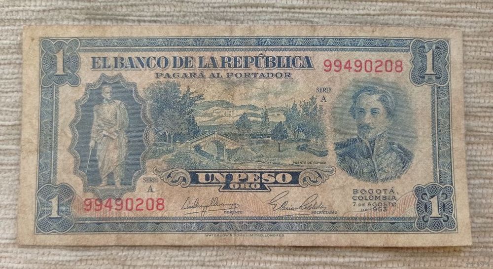 Werty71 Колумбия 1 песо 1953 банкнота Редкая