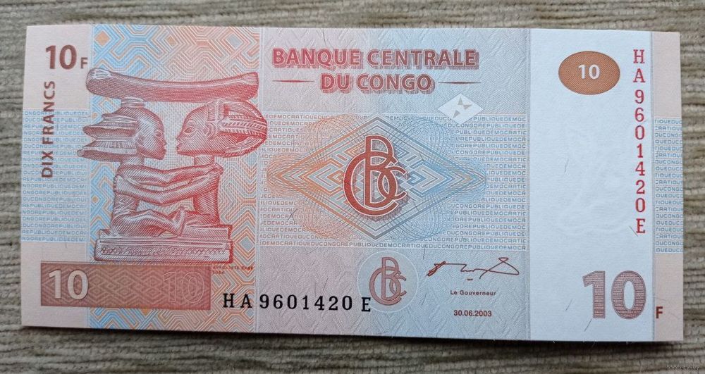 Werty71 Конго 10 франков 2003 UNC банкнота