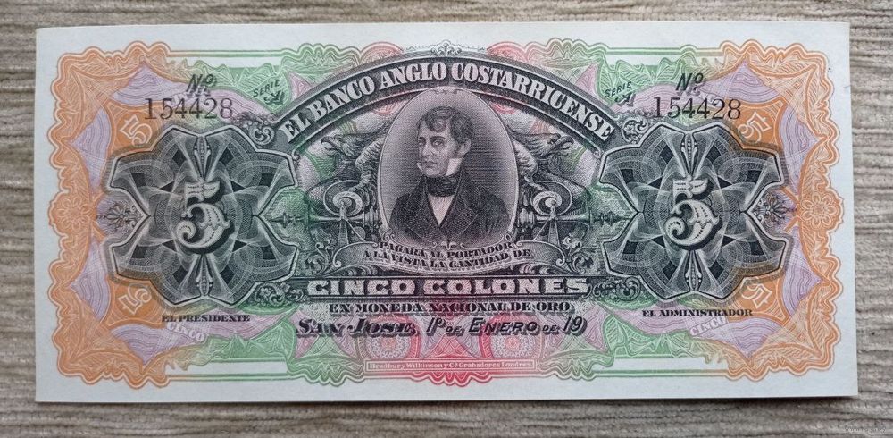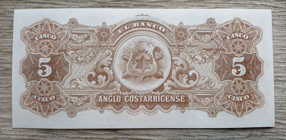 Werty71 Коста-Рика 5 колонов 1903 -1917 UNC банкнота большой формат