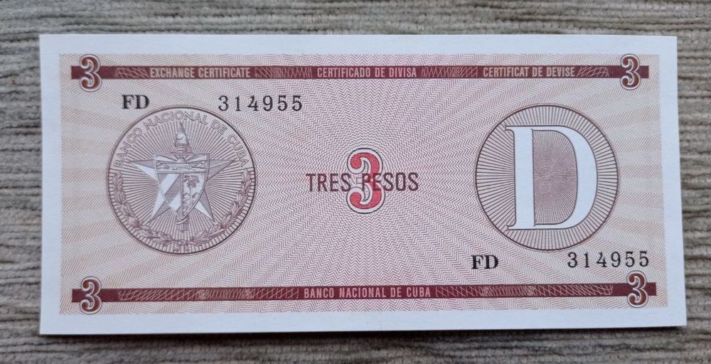 Werty71 Куба 3 песо 1985 года UNC банкнота D