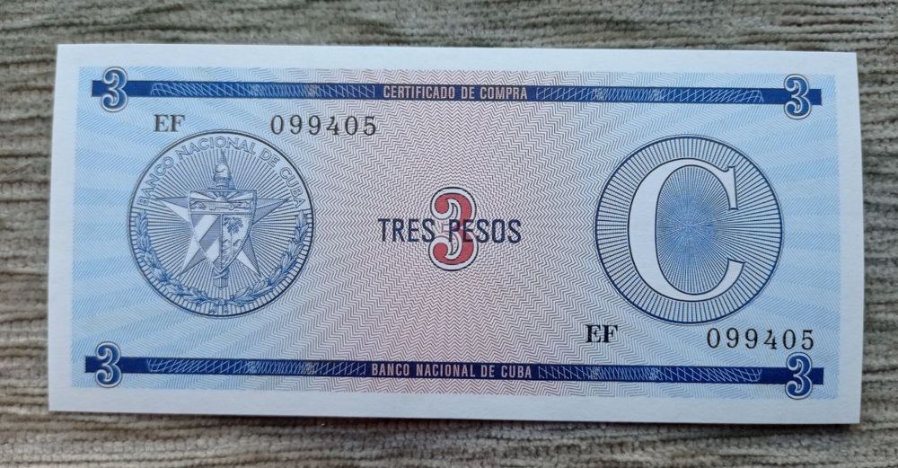 Werty71 Куба 3 песо 1985 UNC Банкнота серия С