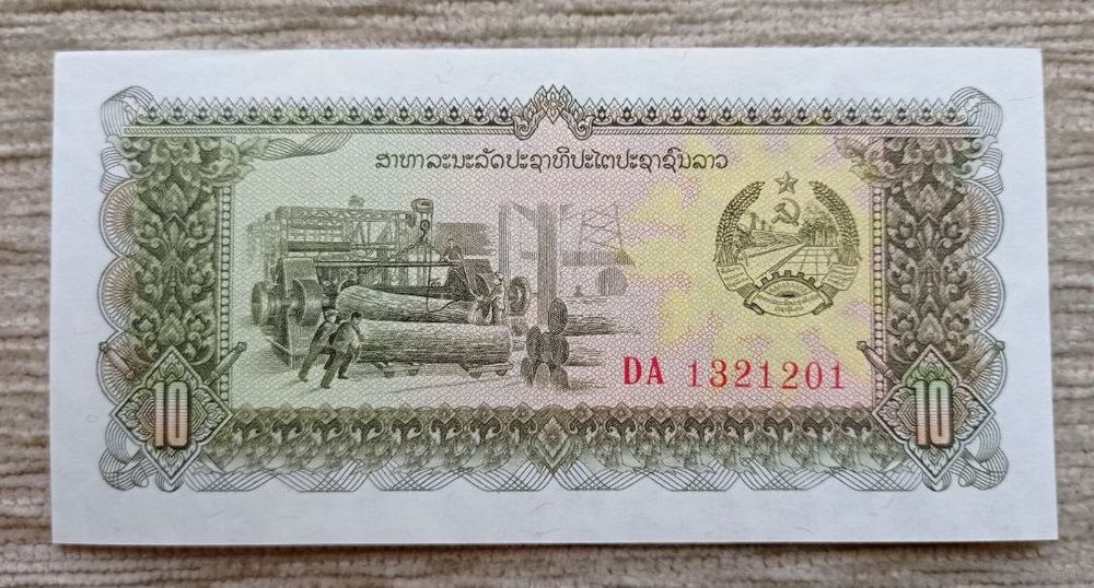 Werty71 Лаос 10 кип 1979 год UNC банкнота Лесопильный завод Медицинская работники