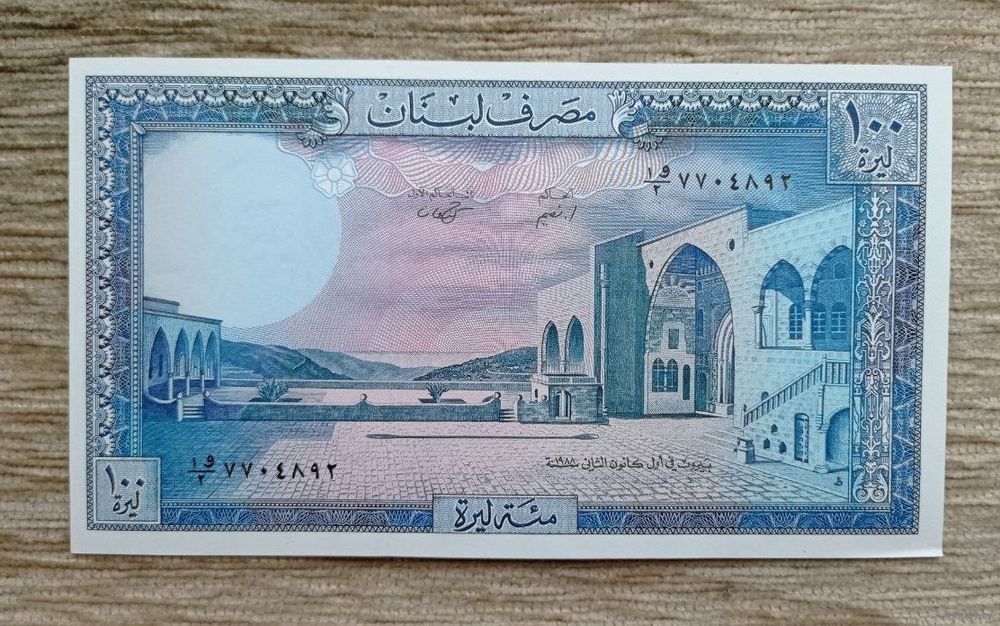 Werty71 Ливан 100 ливров 1988 аUNC банкнота Зима Дворец Байтэддин в Байт-эд-Дине Большой формат