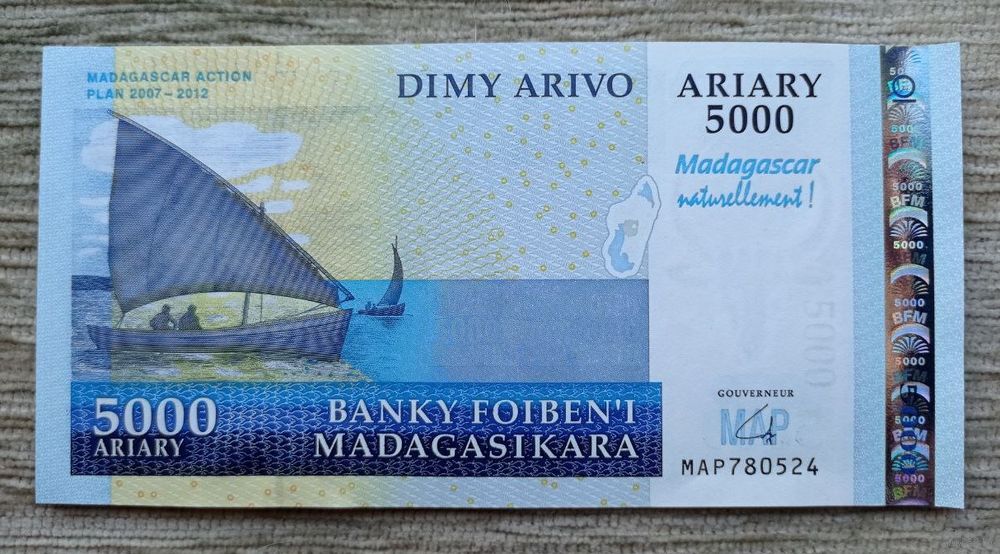 Werty71 Мадагаскар 5000 ариари 2008 МАР План развития 2007 - 2012 UNC банкнота Корабль