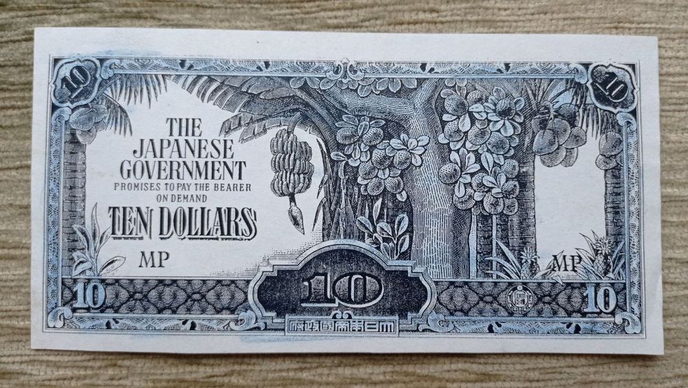 Werty71 Малайя Японская оккупация 10 долларов 1942 аUNC банкнота 1 2